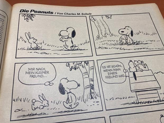 In der Pressedokumentation des Deutschen Bundestages in Berlin lassen sich die gesammelten „Stern“-Hefte jener Jahre durchblättern. Hauptfigur des ersten „Peanuts“-Strips in der Zeitschrift war damals Snoopy, der um einen schmelzenden Schneemann trauert, mit dem er sich angefreundet hat. Im letzten Bild haben auch Charlie Brown und Linus einen Auftritt.