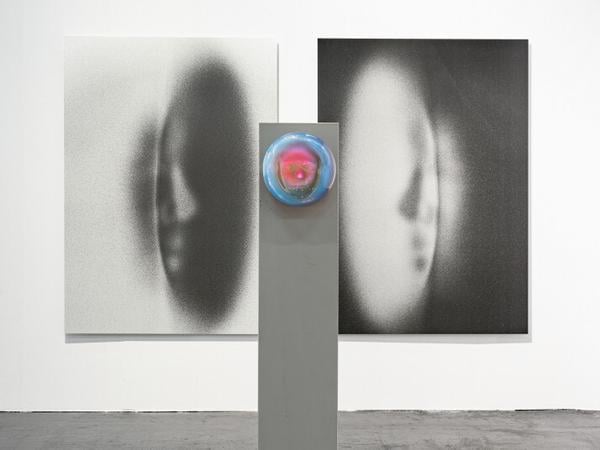 Den Eingang zum geteilten Stand flankiert ein abgeformtes Gesicht der Künstlerin, durch das farbiges Licht pulst (23.500 Euro). Es imitiert neuronale Signale und simuliert einen Ruhezustand des Gehirns. Die Sektion, in der jene Kollaborationen stattfinden, steht dieses Mal nicht mehr isoliert auf der Messe, sondern fügt sich organisch zwischen die anderen Stände.