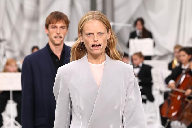 Ähnliches passierte in der jüngsten Prêt-à-porter-Präsentation für das Haus vor gut einem Monat. Hier waren die Gesichter zwar zu sehen, aber durch Mundstücke zu Fratzen verzerrt. Der Witz: Es handelte sich dabei um das Logo des Labels, das deswegen ikonisch ist, weil es nur aus den vier Nähten besteht, mit denen gewöhnlich ein Logo an das Kleidungsstück angebracht ist.