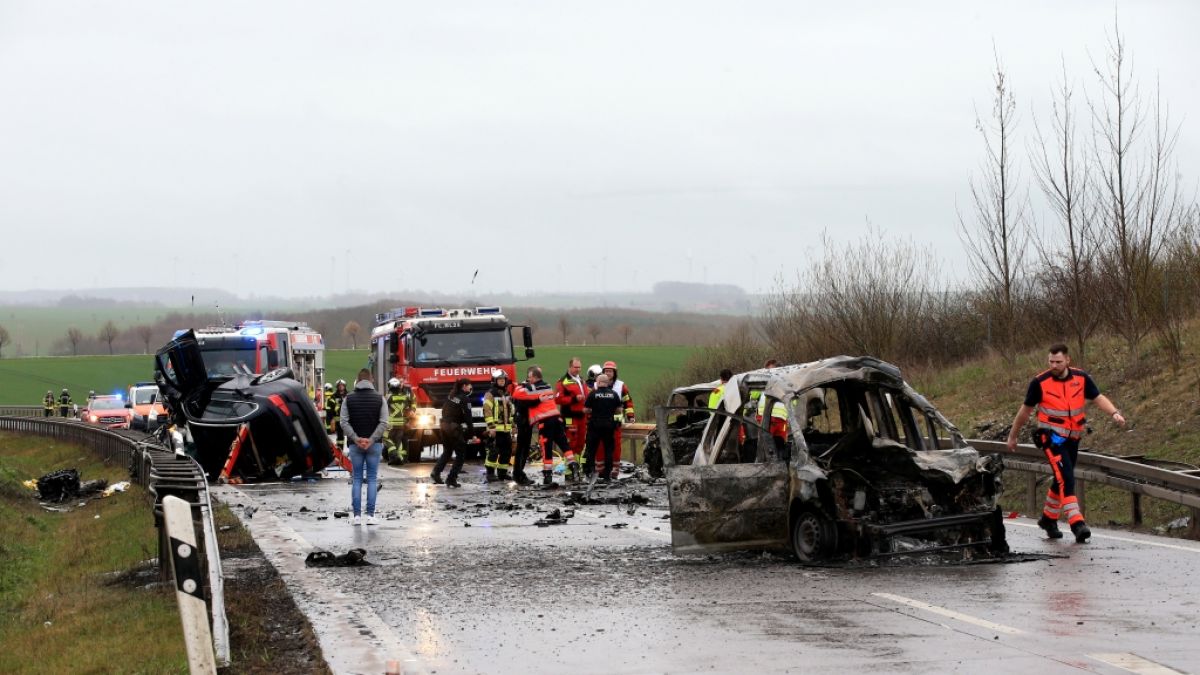 Ein Bild der Zerstörung auf der Bundesstraße 247 in Thüringen: Bei einem Unfall nahe Bad Langensalza sind am Samstag mindestens sieben Menschen gestorben. Die Bestürzung ist groß. Wie konnte es zu dem Horror-Crash kommen?