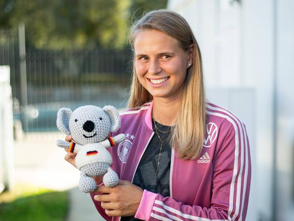 Auf Instagram etwa sind Jule Brand und Lena Oberdorf zu sehen, wie sich gegenseitig im Regen nass spritzen. Außerdem gibt es ein Video, in dem die Spielerinnen nach dem Sieg gegen Marokko im Teambus lauthals zu „This girl is on fire“ mitsingen. Besonders gern mag Chebata das WM-Maskottchen des Teams, einen kleinen Koala, den Spielerin Klara Bühl selbst gehäkelt hat. „Er ist sehr süß und der perfekte Glücksbringer.“