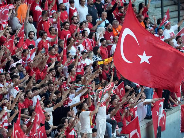 Ein Anhänger des türkischen Teams zeigte sich im Stadion zudem mit einer Fahne, auf der drei Halbmonde auf grünem Grund zu sehen waren. Die Fahne, die auf das Osmanische Reich Bezug nimmt, gilt unter rechtsextremen Türken ebenfalls als beliebtes Symbol.