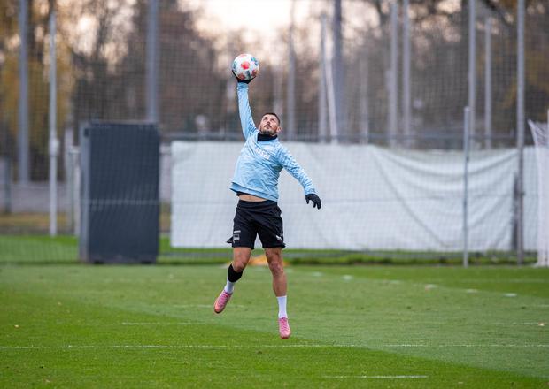Die Auflösungserscheinungen waren nicht zu übersehen. Während die ersten Spieler von Hertha BSC nach der Trainingseinheit bereits den Platz verließen, arbeiteten die Angreifer noch fleißig an ihren Abschlüssen. Ein Pass in den Strafraum, Torwarttrainer Andreas Menger legte ab – und Torschuss.