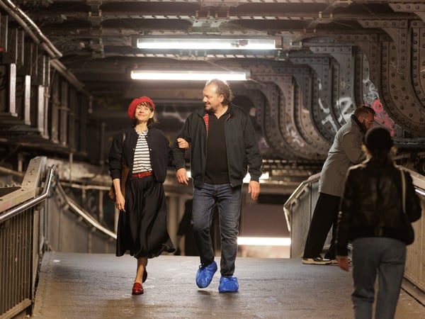 Damals haben Vogel und Paul in „Das Leben ist eine Baustelle“ (1997) und Brühl in „Good Bye, Lenin!“ Berliner Wendezeit-Bilder für die Ewigkeit geschaffen. Jetzt laufen der stämmige Charly Hübner und die dünne Christiane Paul am S-Bahnhof Friedrichstraße über die Spree, und man registriert das Vergehen der Zeit: in Pauls fein gefältelten Gesichtszügen, in der Szenerie.