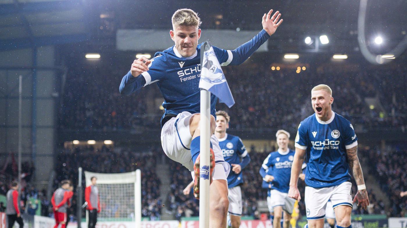 Wenn auf der Bielefelder Alm zum Pokalfight das Fluchtlicht angeknipst wird, wächst die Arminia regelmäßig über sich hinaus. Der ostwestfälische Drittligist, der vor drei Jahren noch in der Bundesliga spielte, hat in dem K.o.-Wettbewerb bislang schon dreimal das Halbfinale erreicht. Auf dem Weg dorthin ließen die Ostwestfalen so machen Favoriten stolpern – so wie in der laufenden Saison den 1. FC Union und den SC Freiburg.