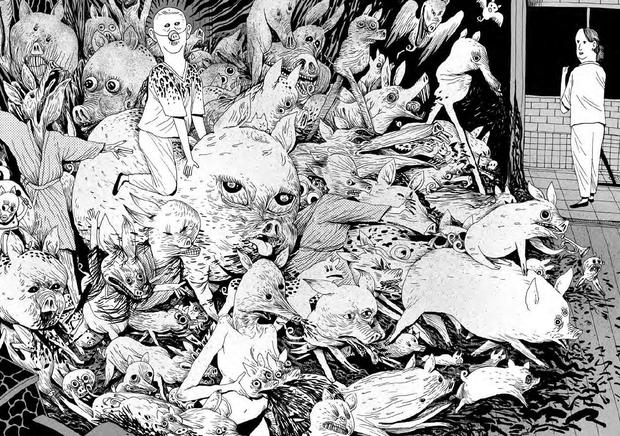 Blutrot glüht die Sauna vom Cover bis zum Seitenschnitt – der Schwede Erik Svetoft baut mit japanisch anmutendem Strich und etwas Rasteroptik ein Wellnesshotel des Grauens. Ein Paar möchte sich eine Auszeit gönnen und bekommt es in einem vermeintlichen Luxus-Resort mit in Monster morphenden Menschen, maskenhaften Gesichtern, überzeichneten Gestalten und wucherndem Gewächs zu tun.