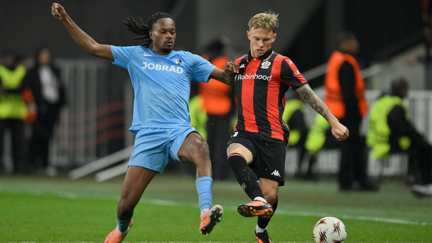 Ein platter Ball in der Kreisliga, klar, aber in der Europa League? „Das war schon skurril“, fand Ginter. Und das hatte auch Schiedsrichter Tasos Sidiropoulos so gesehen. Kurz nach dem Freiburger Ausgleich durch Johan Manzambi (29. Minute) war der Referee sichtlich verärgert in Richtung der Trainerbänke geeilt, um sich wohl beim Zeugwart der Franzosen zu beschweren.