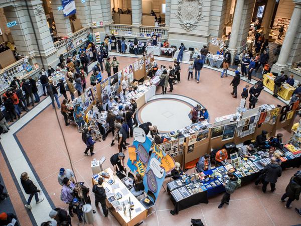 Die Artist Alley der Comic Invasion in der Rotunde des Museums für Kommunikation.