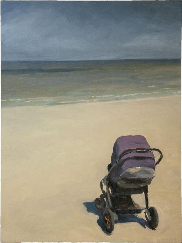 Auf den kleinen Ölbildern des Niederländers Joeri Léfevre schauen vereinzelte Menschen aufs Wasser hin. Die Erinnerung an Caspar David Friedrichs Mönch am Meer taucht auf. Aber die moderne Melancholie ist sachlich, ein nüchterner Befund. Auch ein Kinderwagen steht da, allein am Ufer. Léfevre hat das Bild „Letzte Generation“ genannt.