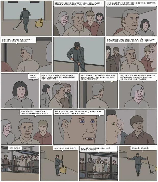 Mit seinem eigenwilligen Zeichenstil transportiert Drnaso großartig die kalte, düstere Atmosphäre, die in dem Comic vorherrscht. Geometrische, akkurat gezogene Linien lassen ein steriles und trostloses Setting entstehen.