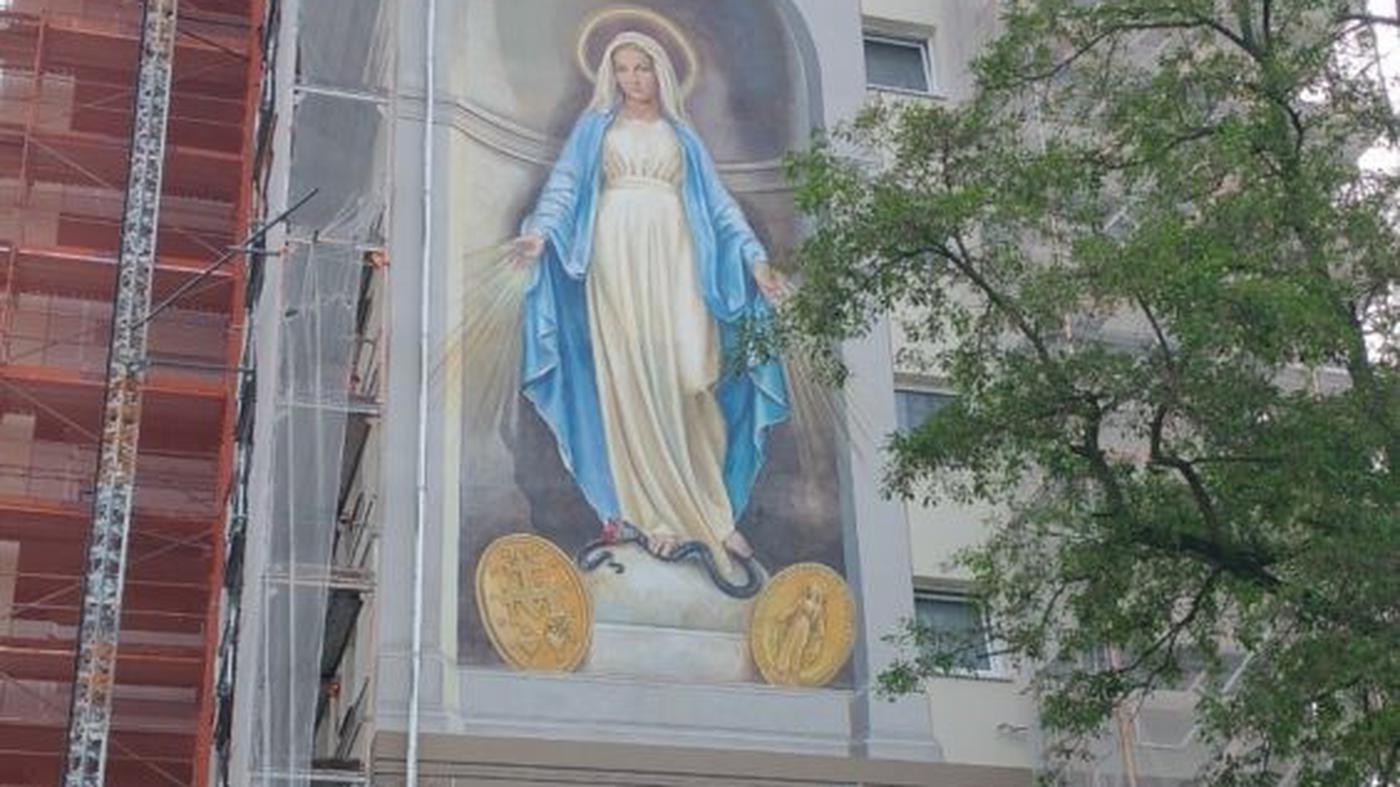 Heilige Maria als riesiges Wandgemälde: War das die Kirche – oder eine religiöse Streetart-Gang?