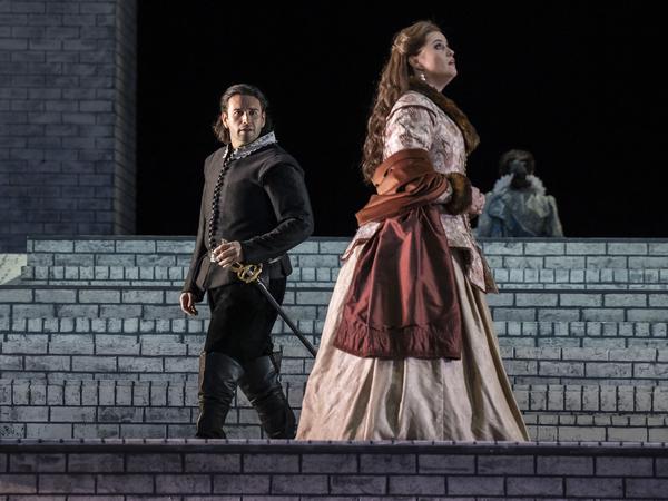 Was sich auch im schlank besetzten Cast spiegelt: Joshua Guerrero singt die Titelrolle sogar mit eine Spur zu leichtem Tenor, aber glut- und druckvoll, Rachel Willis-Sørenson ist eine lyrisch aufblühende Elisabeth, Clementine Margaine eine lodernde Eboli, herausragend Igor Golovatenko als Posa mit zwingendem Legato. Ein Sängerfest.