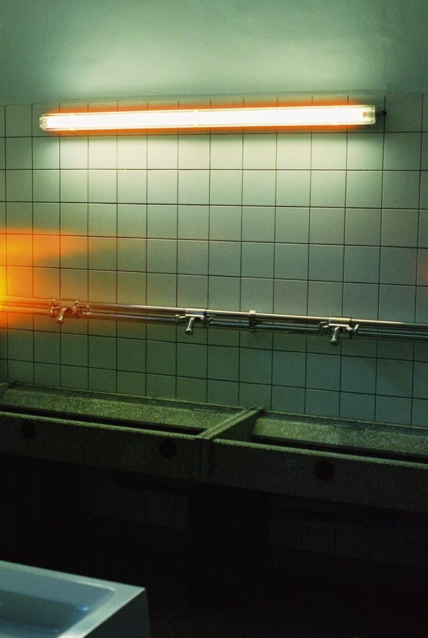 Ob der Kunstraum „Haunt“ ein wenig mit der Vorstellung eines „hunted house“ spielt? Könnte schon sein, wenn man im Waschraum der ehemaligen Ausbildungsstätte des Gartenbauamts steht (Foto unten).