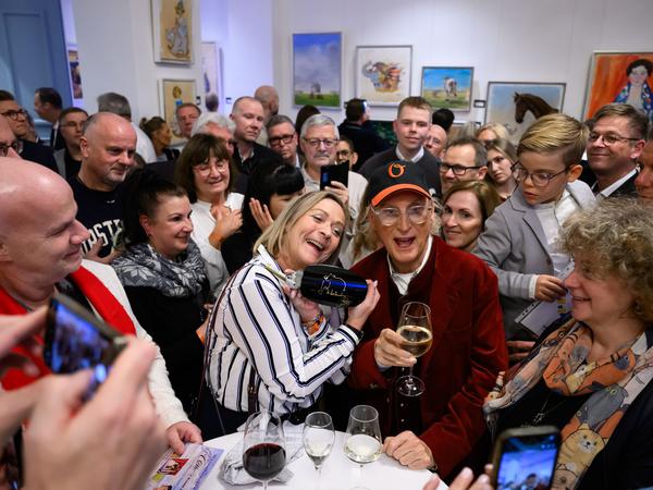Zur Ausstellungseröffnung in Dresden reichen Kellner den Abendgästen Gänseleberpastete und Wachteleier. Drucke kosten um die 2000 Euro, Originale deutlich mehr. Das auf Monet anspielende Seerosenbild „Wotterlilly“ mit Ottifant drauf gibt es für 77.400 Euro, inklusive Rahmen.
