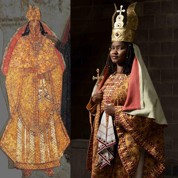 Die fünf Gewänder und dazugehörigen Attribute wie Kronen und Mattas (lange Schals) basieren auf fünf Wandbildern aus der Kathedrale von Faras, der Hauptstadt des Königreichs Nobadia. Es erstreckte sich im 6. und 7. Jahrhundert über das Gebiet des heutigen Nordsudans und Südägyptens. Faras existierte bis ins 14. Jahrhundert als Hauptstadt der nördlichen Provinzen des Königreichs Makuria.