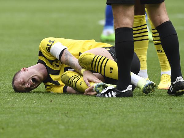 Überschattet wurde der Derbysieg des BVB von einer Verletzung von Marco Reus. In der 30. Minute des Spiels knickte der Nationalspieler von Borussia Dortmund nach einem Zweikampf mit dem rechten Fuß um. Der 33-Jährige schlug sofort vor Schmerzen die Hände vors Gesicht und wurde nach langer Behandlung mit der Trage vom Platz getragen.