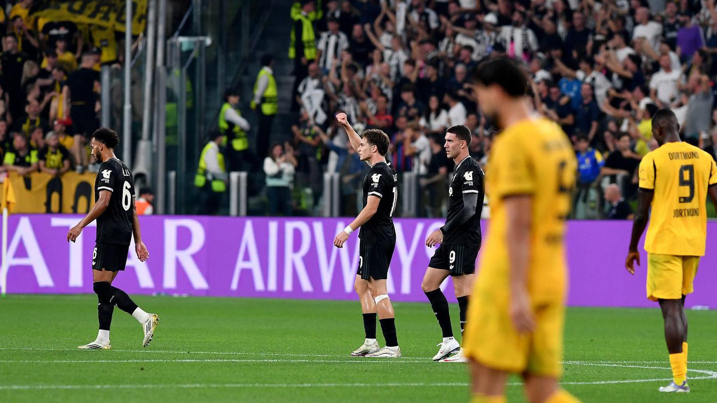 Dortmund hatte am Dienstagabend in Turin einen Sieg in der Nachspielzeit noch aus der Hand gegeben und trotz Zwei-Tore-Führung nur ein 4:4 erreicht. Adeyemi (52. Minute), Felix Nmecha (65.), Yan Couto (74.) und Ramy Bensebaini (86./Handelfmeter) erzielten die Tore für den Fußball-Bundesligisten. Der Ex-Münchner Kenan Yildiz (63.), Dusan Vlahovic (68./90.+4) und Lloyd Kelly (90.+6) trafen für die Italiener.
