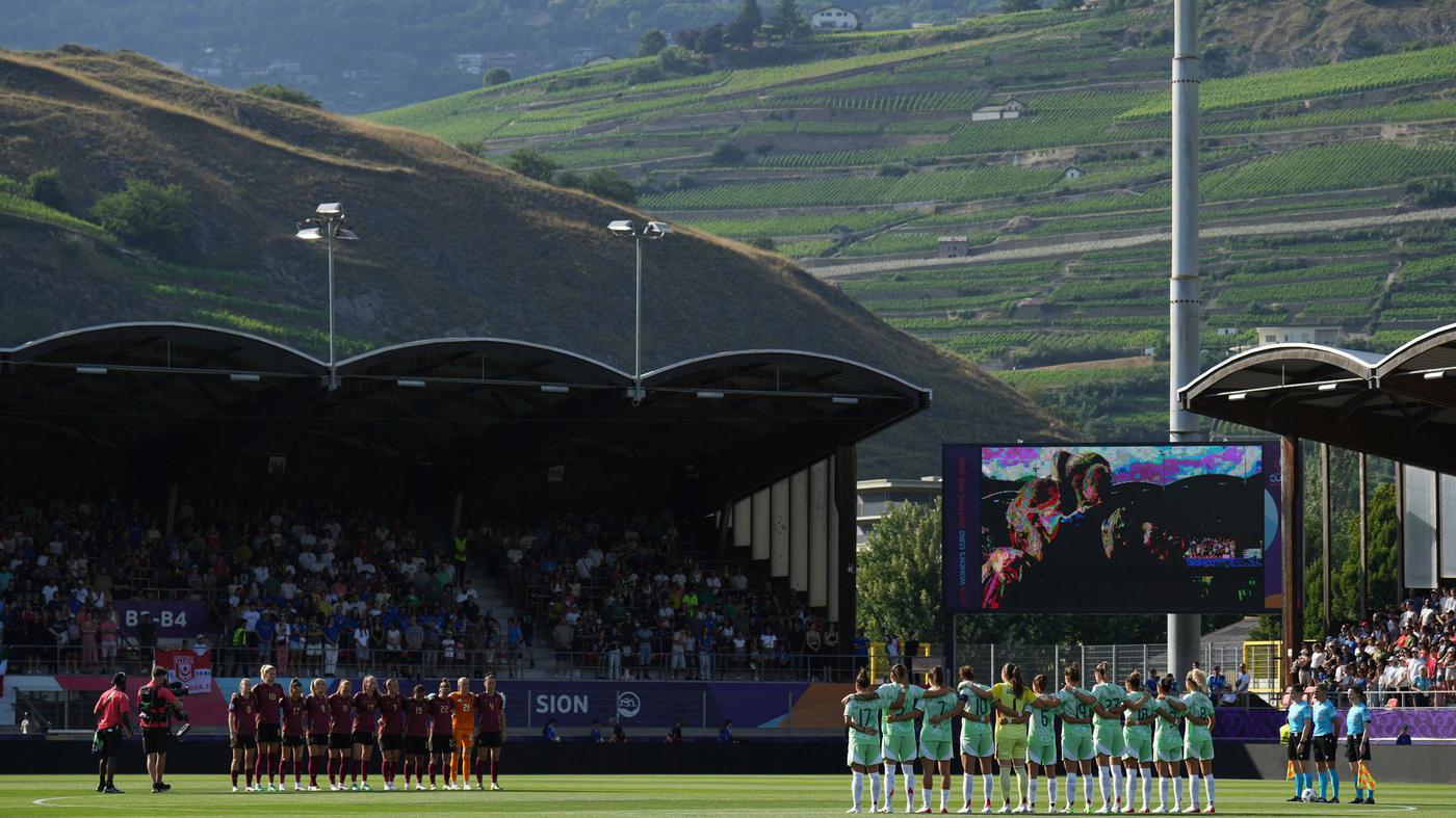 Nach dem tragischen Unfalltod des portugiesischen Nationalspielers Diogo Jota vom FC Liverpool gibt es bei der Frauen-EM in der Schweiz im Gedenken an den 28-Jährigen Schweigeminuten. Beim Gruppenspiel in Sion zwischen Belgien und Italien versammelten sich die Spielerinnen beider Teams nach den Hymnen am Mittelkreis und hielten genau wie die Zuschauer im Stadion inne. Am späteren Abend hielten Portugals und Spaniens Fußballerinnen vor dem Duell im Berner Wankdorf-Stadion ebenfalls inne.