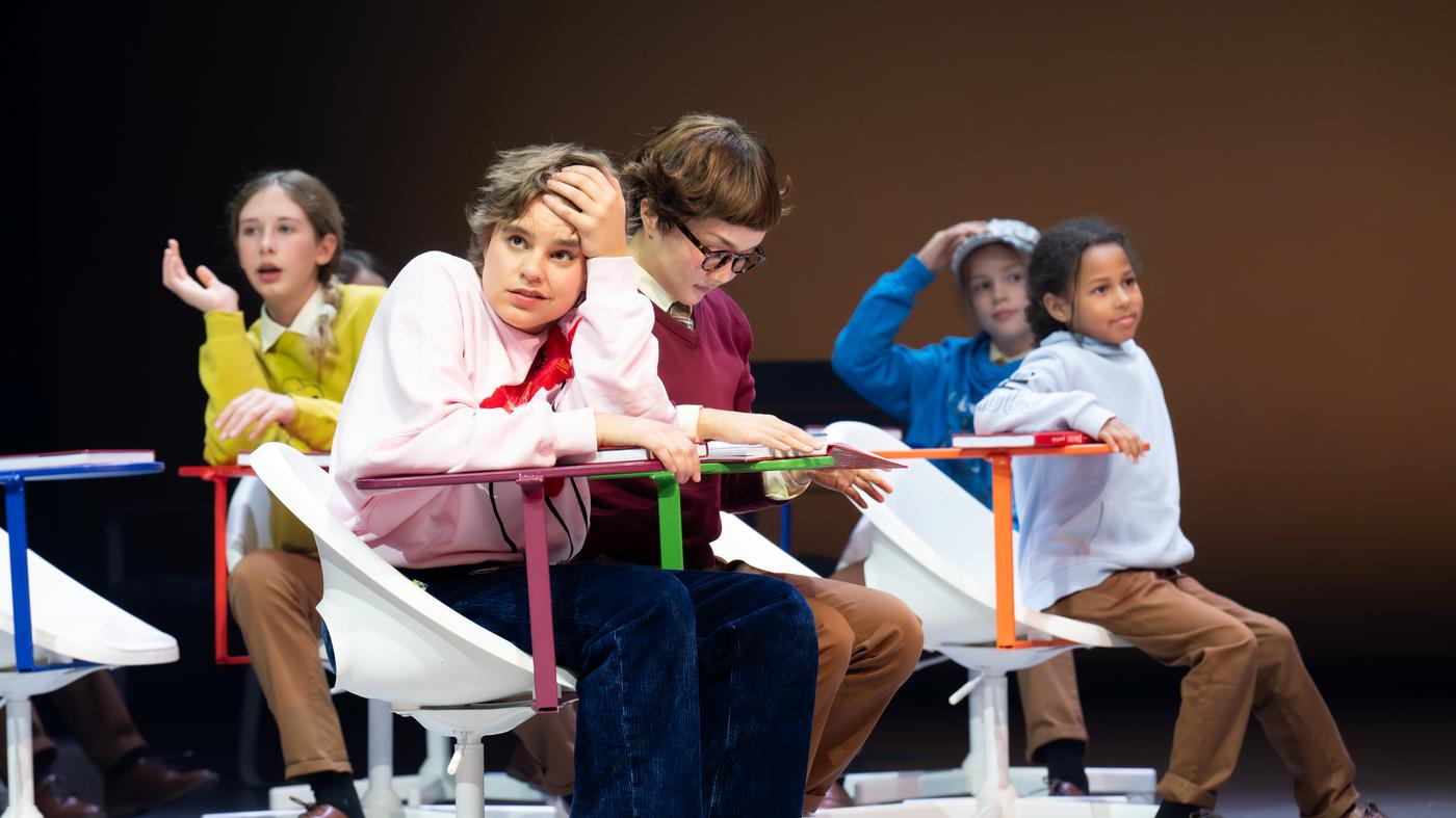 Cool, dieses herbeifliegende Klassenzimmer, wenn die Kids vom Kinderchor ihre Stühle samt Lehnen-Klapptisch im Turbotempo auf die Bühne rollern, für eine Mathestunde mit pubertären Kabbeleien, munteren Gesängen und einem restlos überforderten Lehrer.
